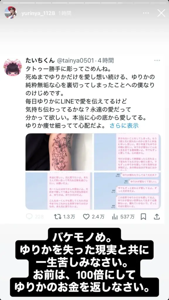 どうやら、たいちくんは、ゆりにゃさんに謝罪と愛を伝えたかったようですね。
